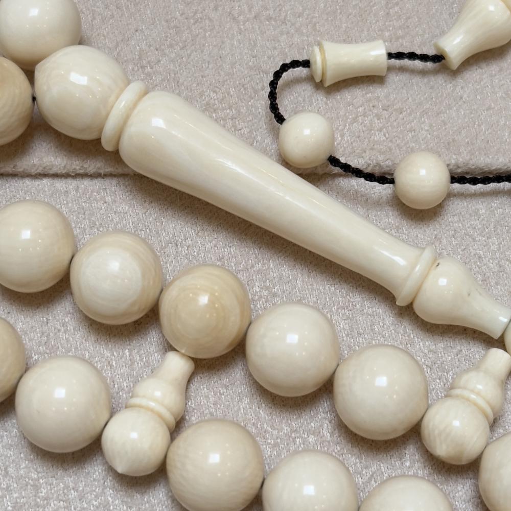 سبحه عاج ناب الفيل 🐘 الإفريقي مميز جدا مع شاهد ملكي جميل.خراطه سوبر رائعة ومميزة جداً ، من خراطه مصنع الفن.الكركوشه عباره عن تمليكه من نفس الخام . مسب...